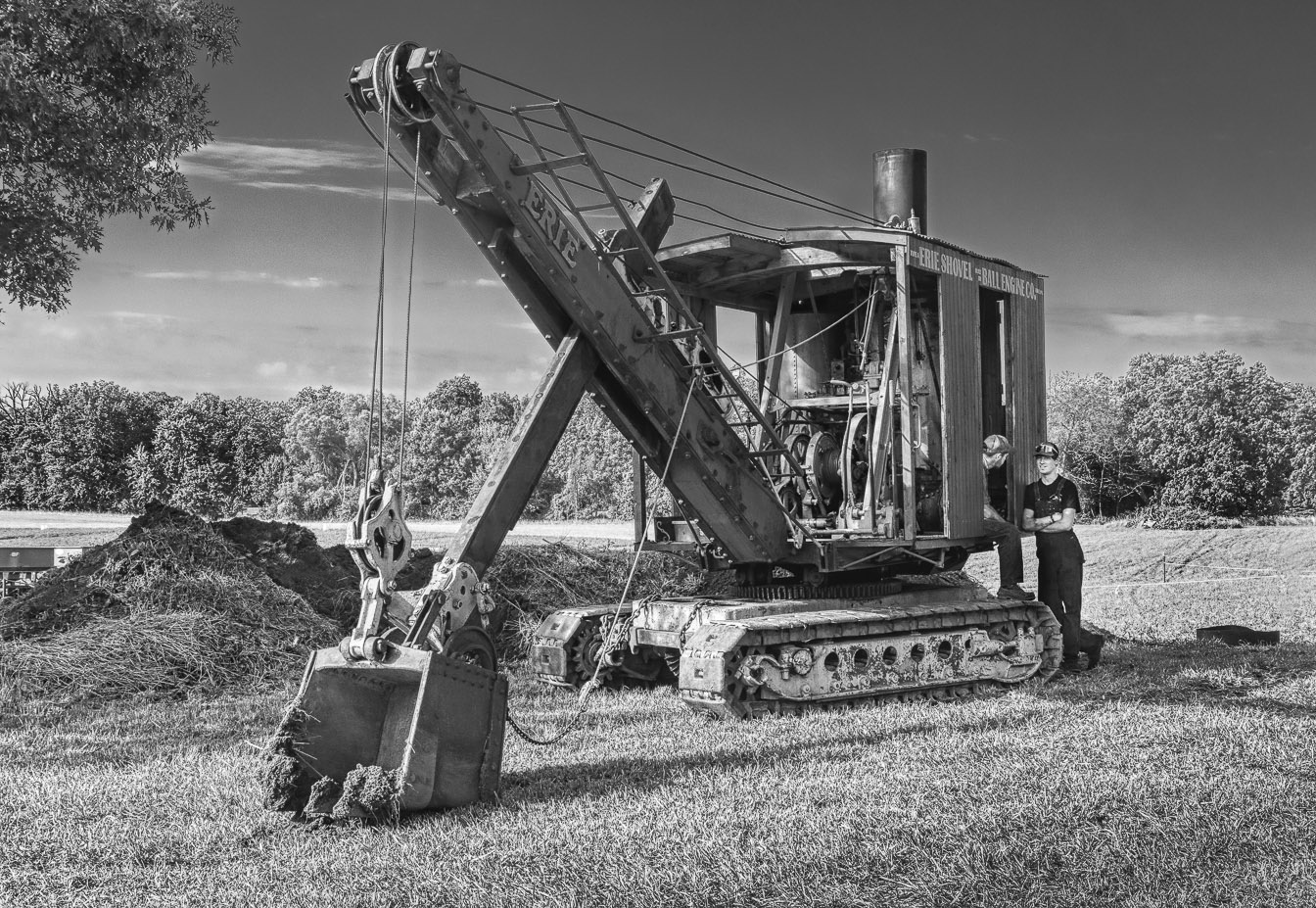 Great job with the HDR processing. Lots of great detail here. I liked Jim's suggestions and did something similar plus I took a pass at fixing the haloing around the tree on the left and the cables coming down from the front of the shovel. I used the clone stamp tool, set at Darken mode with an opacity of 80 and cloned from the areas immediately adjacent to the problem spots. I didn't do a perfect job, but was able to deal with most of the obvious haloing. |