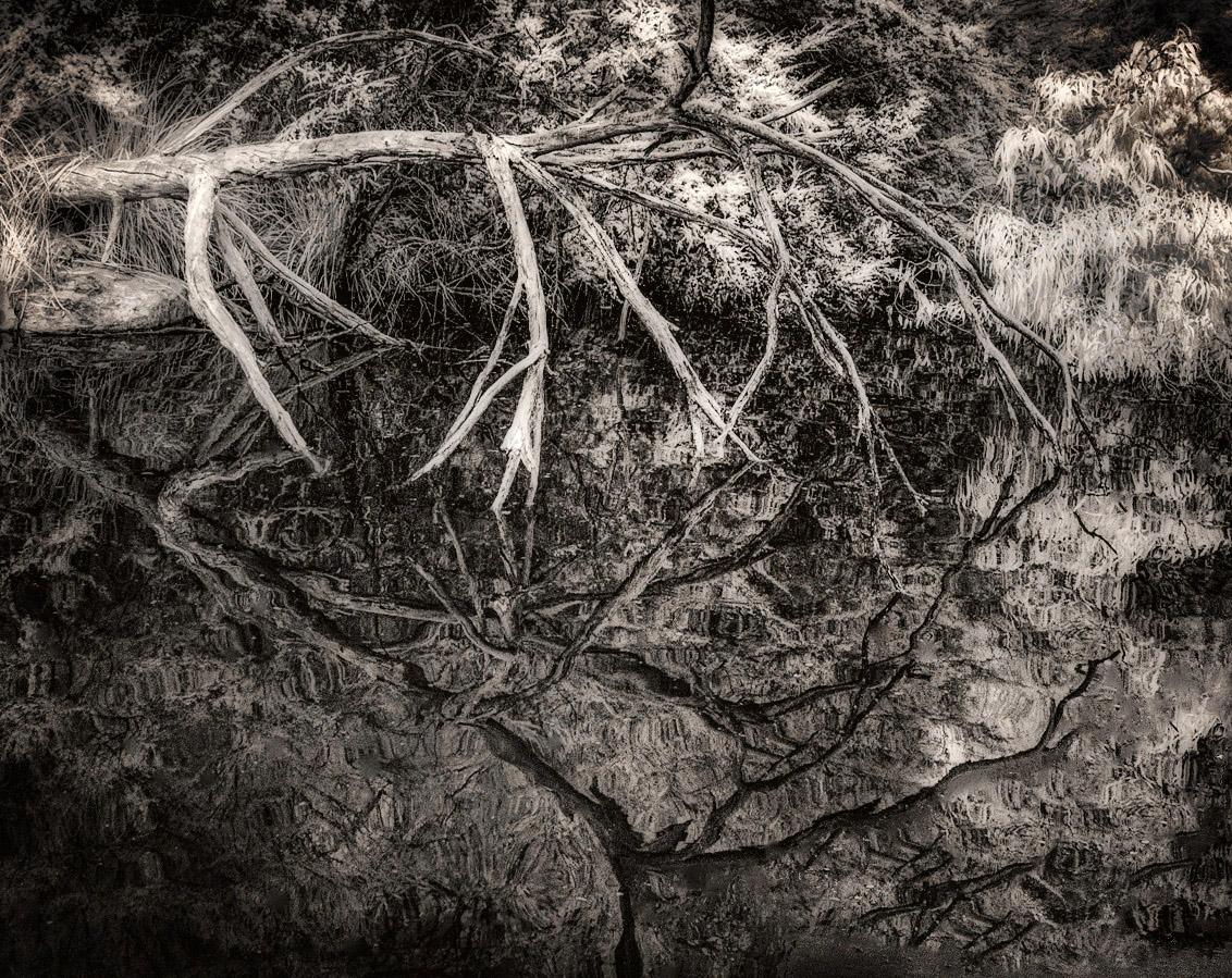 I concur with the others. The contrast with the background really makes the image. you could darken the leaves to make them stand out more but that kind of processing has a tendency to make BW IR look too much like conventional IR and what's the fun of that? |