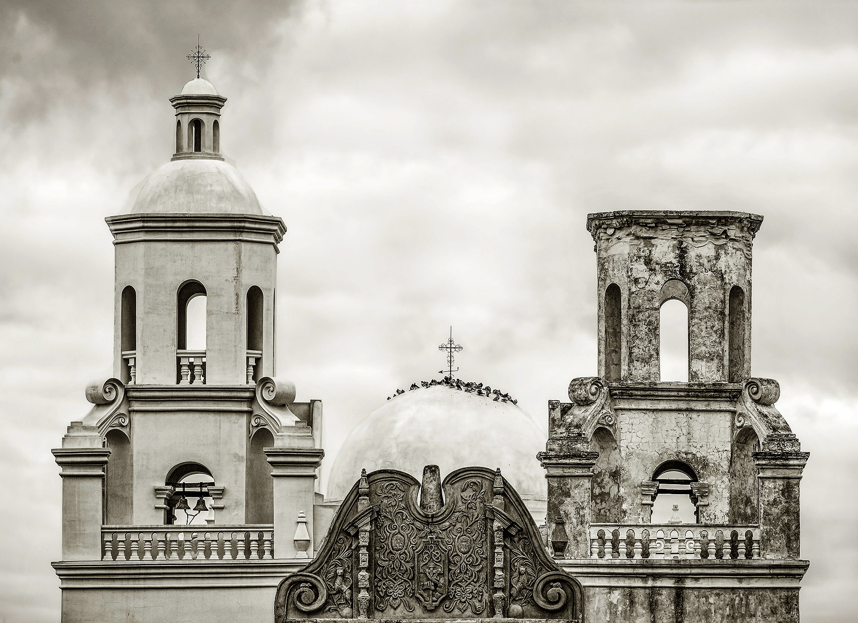 I really like the composition, but I find it feels too faded. I fell in somewhere between your version and Jim's. I (imperfectly) selected the sky and slightly adjusted it. I took the structures and added a great deal more contrast. |