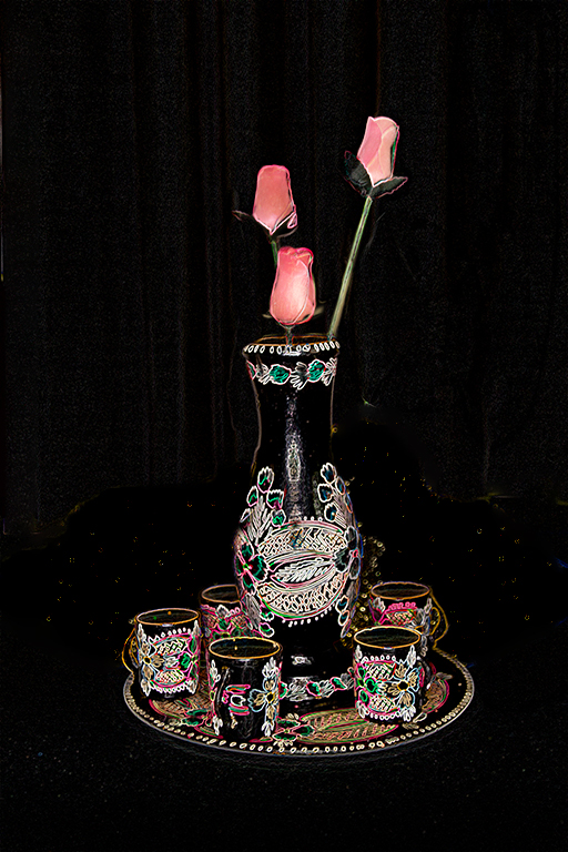 Finally, I cleaned up the new image by removing the glare that is in the center of the vase and using Content Aware to clean up the margins of the background fabric.