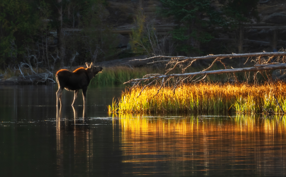 Stunning golden light - on the weeds, the animal, and reflections in the water. Loved it. beautiful image.