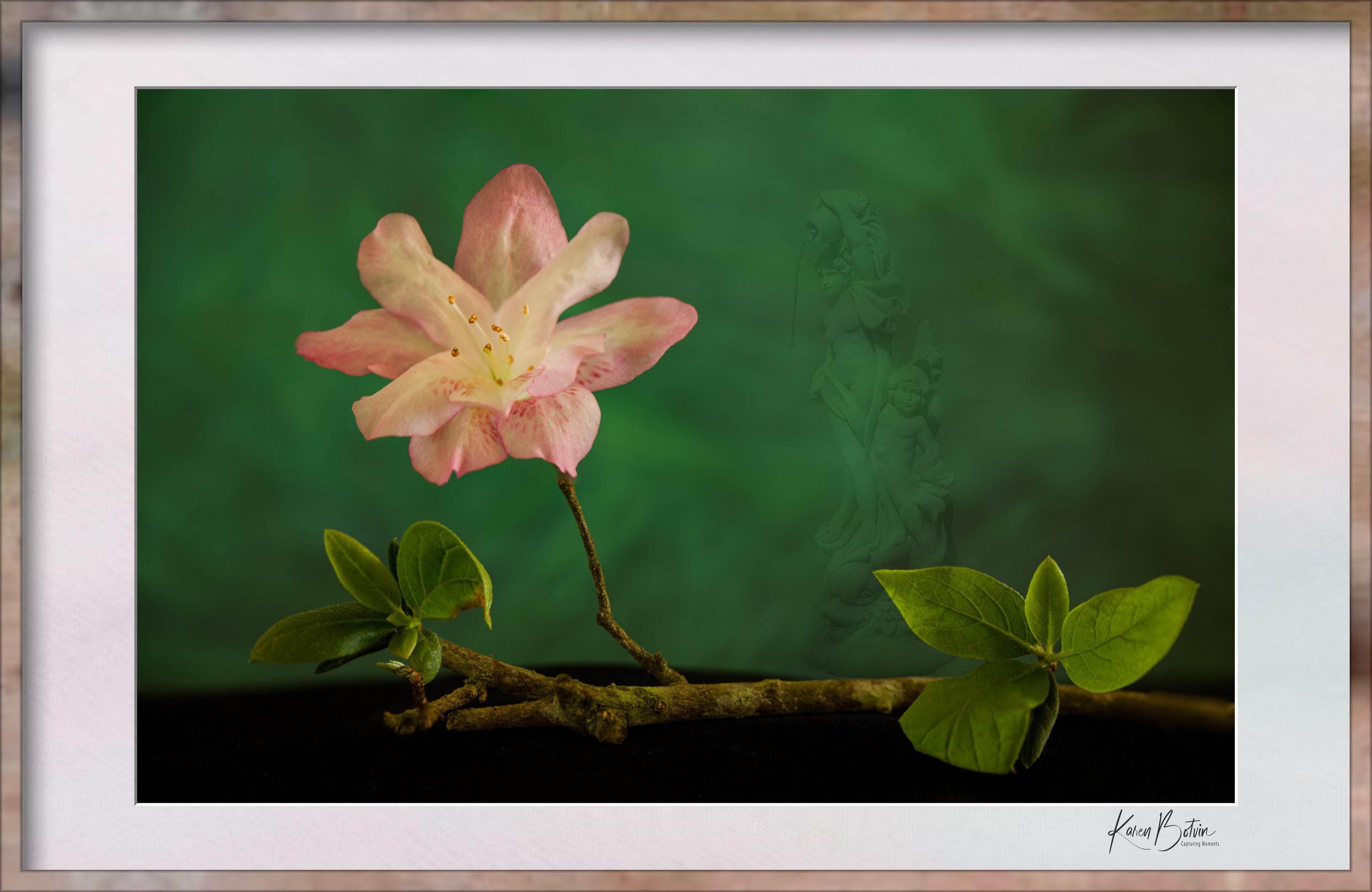 Interesting concepts by adding in the statue and the frame. They add depth. Also the statue helps balance the image by filling in the top right quadrant, but the image does become quite busy.