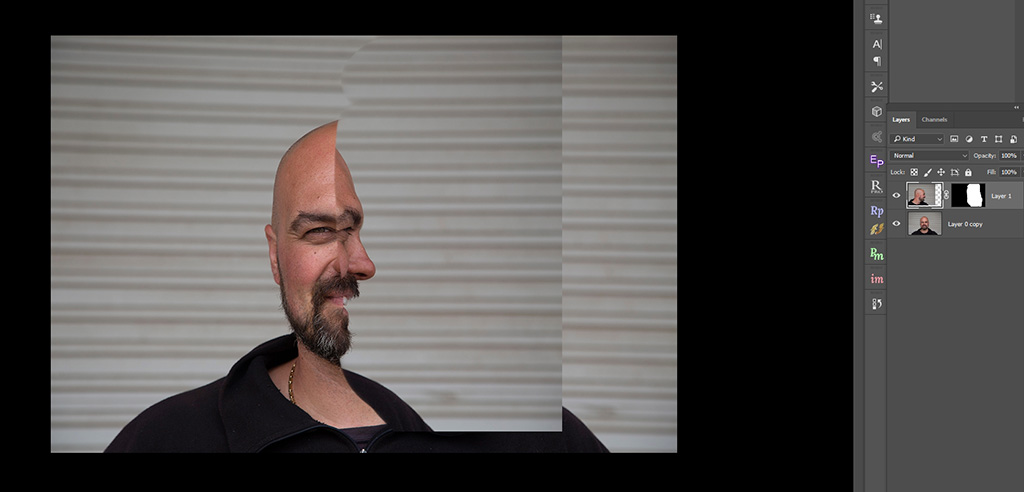 Move this layer around until you have the two images aligned as you want them to be. Paint with the black brush to remove any errors.