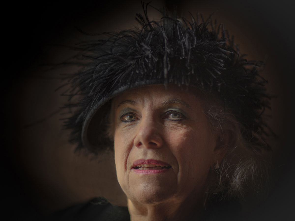 My eye keeps focusing on the white hair (camera left). It is the brightest part of the image and slightly out of focus. Maybe if you had asked her to pull it behind her head or tuck it up under the hat, or even turn her head so it is not so dominant ... or even clone it out! It is easy to be "picky" after the event.