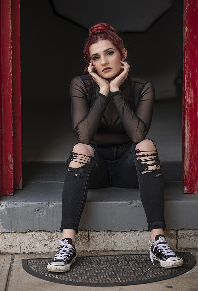 The image below, attached to my response to Piers, has not been worked on apart from the crop. It was taken with natural light as she sat on the backdoor step of the studio.