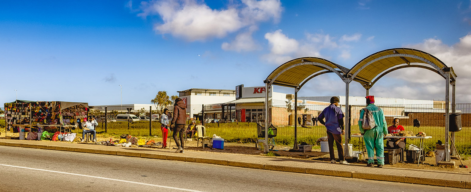 Gerhard, this is a bright roadside market with vibrant colours and an inviting feeling about it compared to the sterile shops in the background.