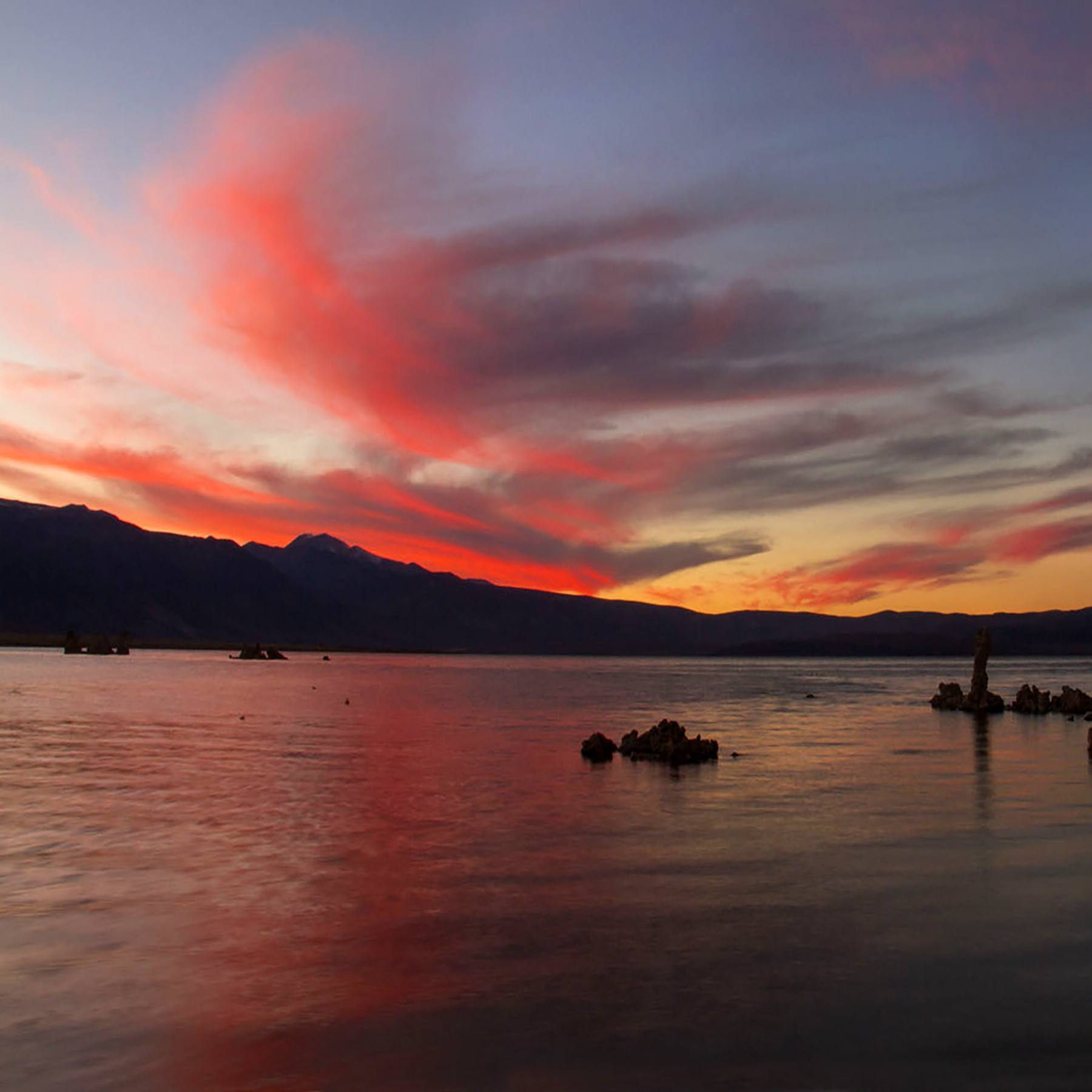 I keep coming back to this image to study it before making any comments. It has the potential of being a very dramatic shot. I agree with your vision to keep the sky and reflection as the main interest which makes me think that the rock formations can be omitted altogether. I also found that the sky could use some additional "oomph" and that the reflection was not as evident as I'd like. I think that this image a great example of the sad fact that the sensor can't render a representation of what the human eye actually saw. I made a couple of PP changes - straightened the horizon by 1 degree, cropped out the rocks on the right and added some contrast. I also squared the image after the crop. I think that this is may be closer to what you actually saw..... |