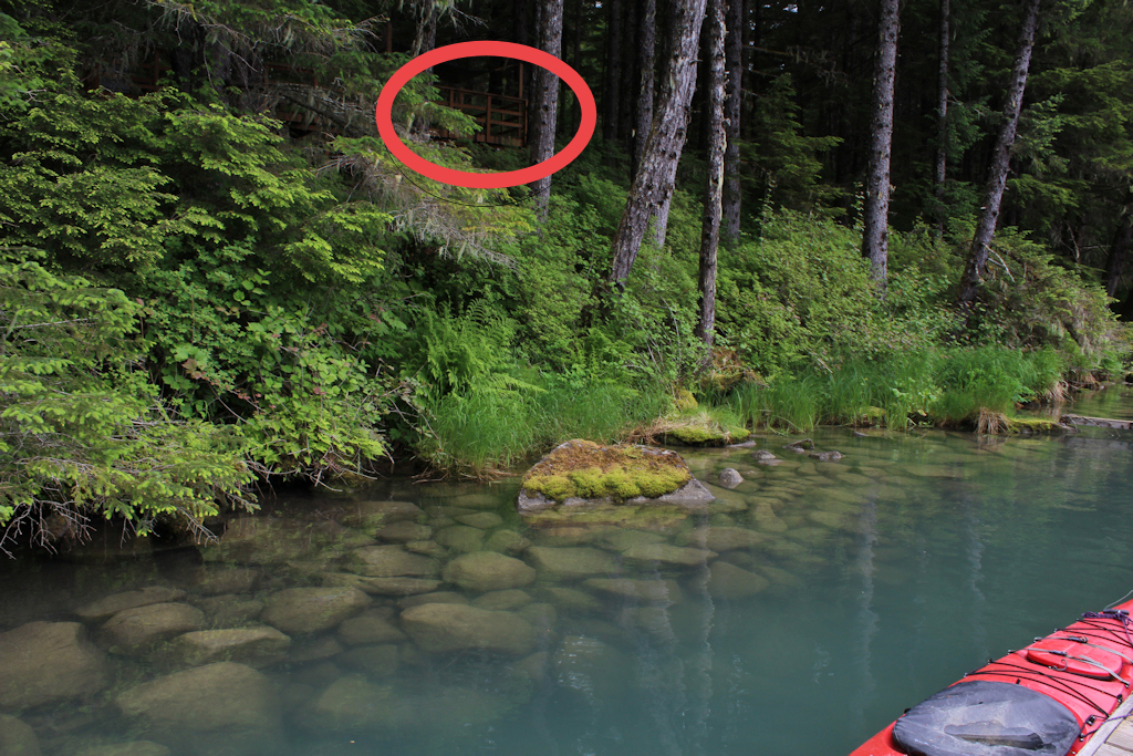 I see what you mean. The structure is in the trees and you do have to look hard. Here it is with the platform circled. |