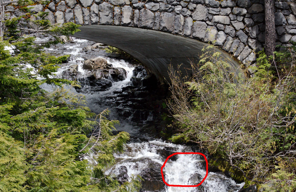 I like you composition with the water flowing under the bridge. For me, this is framed nicely. The water in some areas is over exposed (blown out) where there is a lot of froth. One method you could try to improve the water would be to process the RAW file a second time (separately) and adjust the exposure until just the overexposed areas start to show good detail. place this new image in a separate layer UNDER this image. Creat a layer mask on the upper image and brush in the small areas that are blown out. I could not adjust you *.jpg file this way, but I created another layer with a mask from your *.jpg and did something similar to the blown out area near the bottom right edge (circled). |