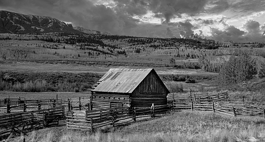 Paul, I only have one problem with your B&W photos: as I work on improving my B&W skills you keep setting the bar higher for me to measure up to. I like the high contrast in the image and I think the composition is well done. I think you have layered the image well with the grass in the foreground, then the barn with the hills and sky behind it. The lighting in the clouds works well for me.
