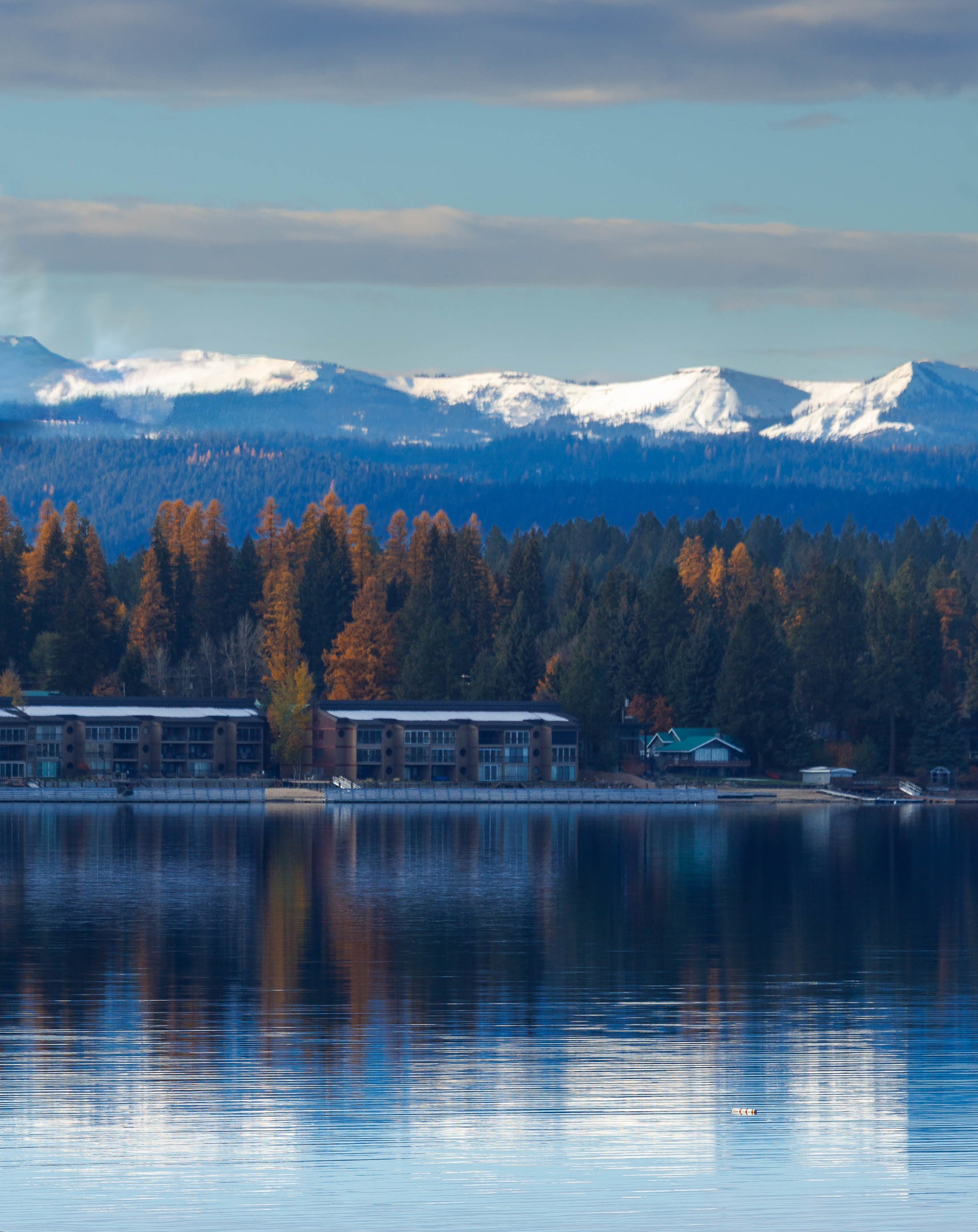 I like this shot. For me it creates a sense of calm with the lake backed up by the forests and mountains in the background. I think you did a nice job with the lighting and colors and I appreciate that you have kept good focus and depth of field. Except I agree with Francois about the branches coming in from the sides.