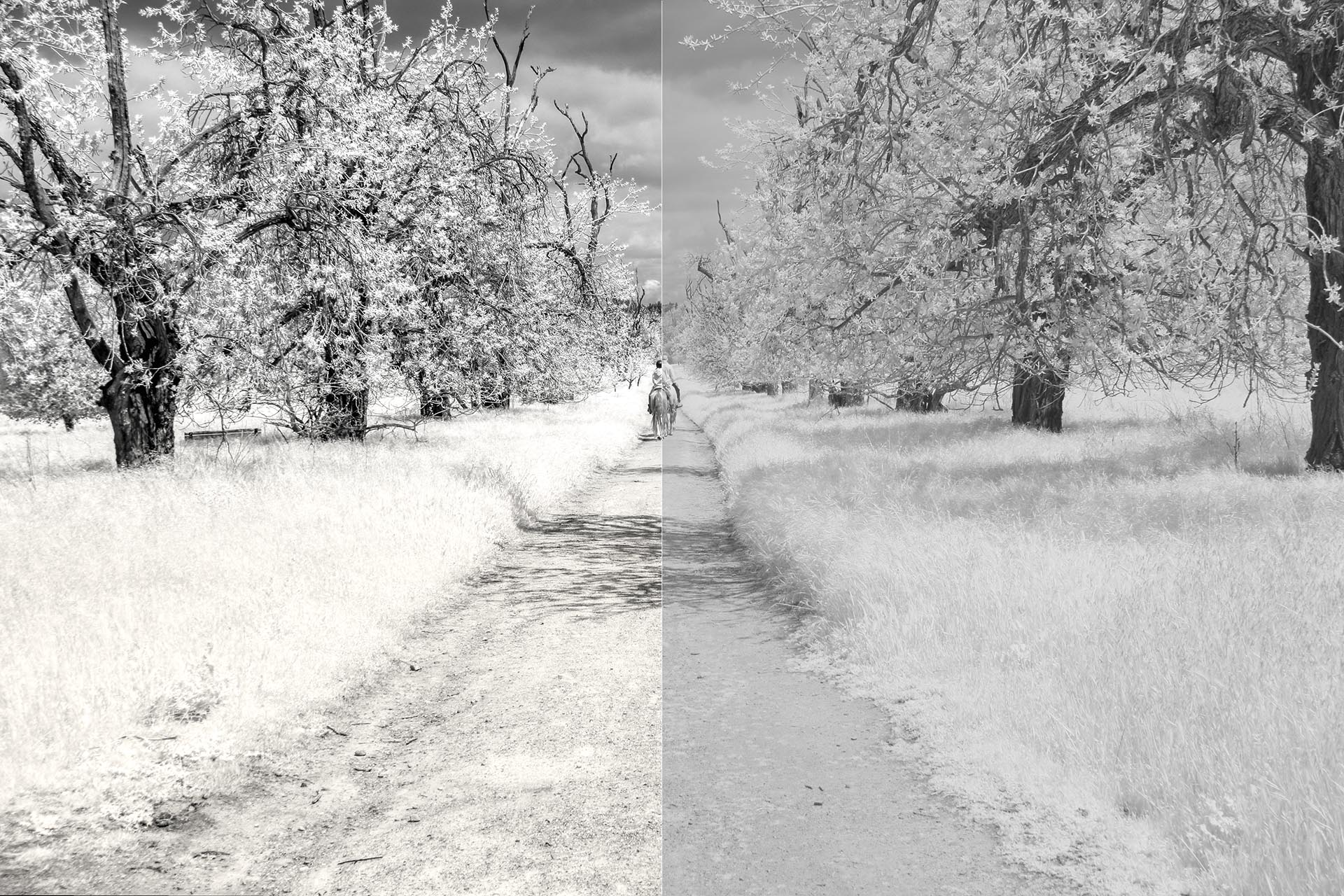 Aurora HDR (3 images over, under, center) and the right the over exposed image used. Still a problem with the green grass in this one. Another opportunity. |