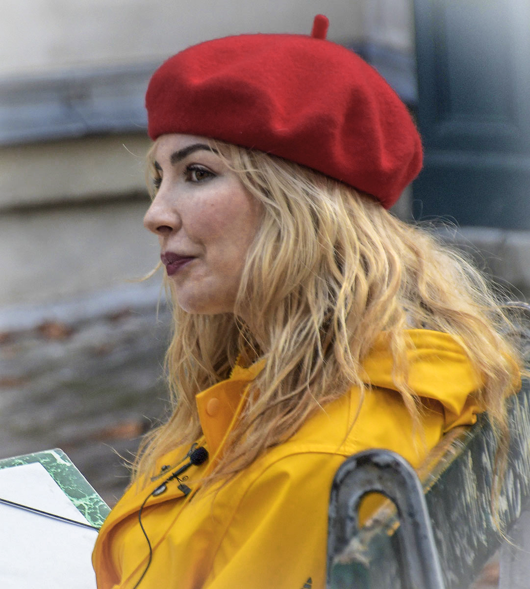 I see this as a nice street portrait that looks into the character of the subject. She is not posing in this image, just being herself, and showing interest in what is going on around her.
