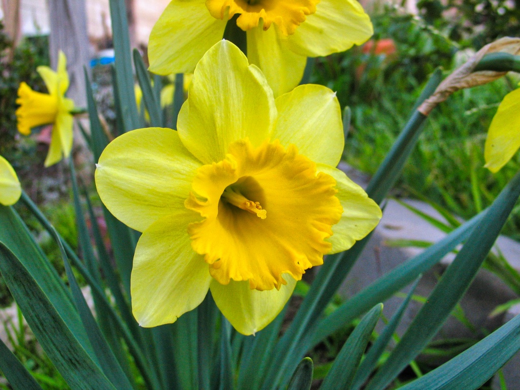The background fits and gives perspective to the subject. The reversal of the leaves looks a bit strange and also gives support the flower. Daffodils started blooming in January in my corner of the country. This flower looks huge in the original photograph. |
