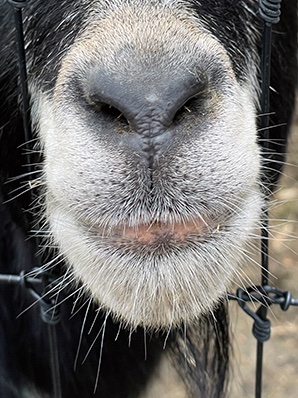 Goats can be good companions for other animals and this one must have liked you with the expression you captured here. It's the smile that held my eye. Great photograph with a happy subject. |