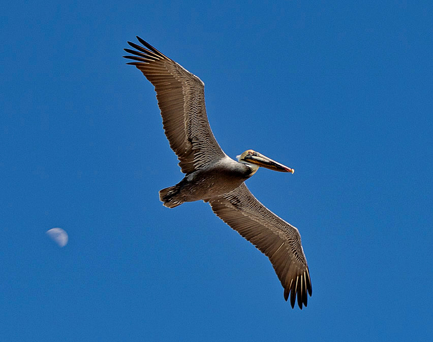 Maybe the image could be sharpened to bring out more of the details of the bird face/beak? I just played with the image using (https://photoeditor.polarr.co/) to try to see if it might be possible. Maybe it works or doesn't? I also like Bev's suggestion of moving the moon to so the bird is flying toward it, to match the title.