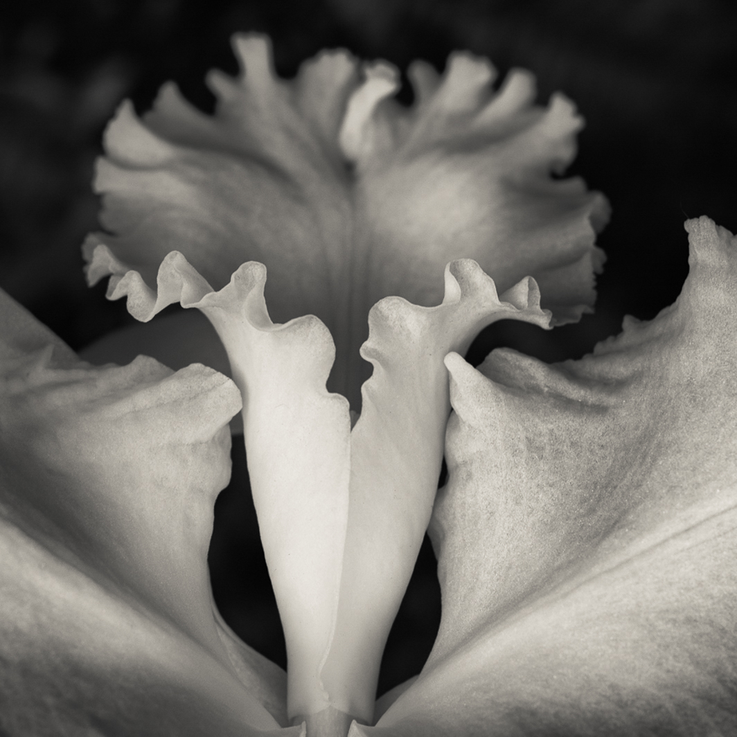 Denise, Your image is beautiful and I can see why you were attracted to this flower. It has so much movement and does look like a dancer's skirt. As I scrolled down the screen to look at the comments of others, your image was cropped by the scroll. To my eye, I liked the cropped image which deleted the upper part of the flower and made it more abstract. To that end, I reworked your final image in LR. I made a square crop, flipped the image vertically, put a darkening gradient on the now lower petals to suggest three dimensionality. The final image is more abstract and the out-of-focus petals have a lovely movement that seem to dance into the background. I used a light sepia toning on the highlights (highlights hue 52, sat 14; balance -16). Finally, I adjusted the exposure slightly to brighten the image after toning. |