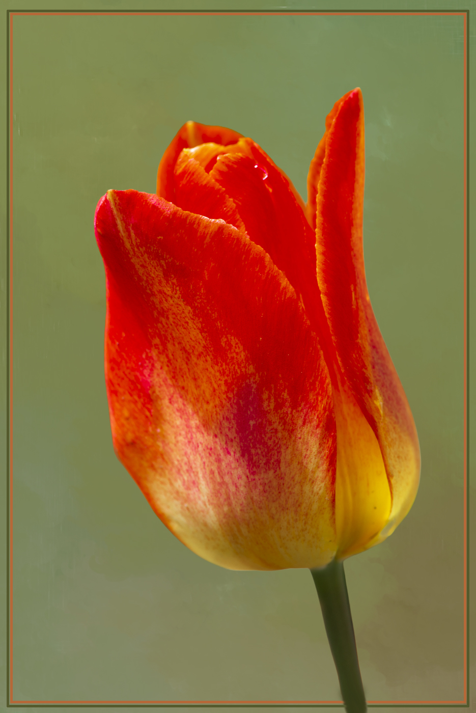 Who doesn't love tulips? This is a lovely portrait of the flower. I do feel as though the subject is a bit too big for the frame. I took the liberty of reducing its size in PS. Although I much prefer your background, I used the mixer brush to fill in the background where I reduced the size of the bud. I also changed the color of the stroke to more closely match the colors in the image. Just my take on your lovely image. |