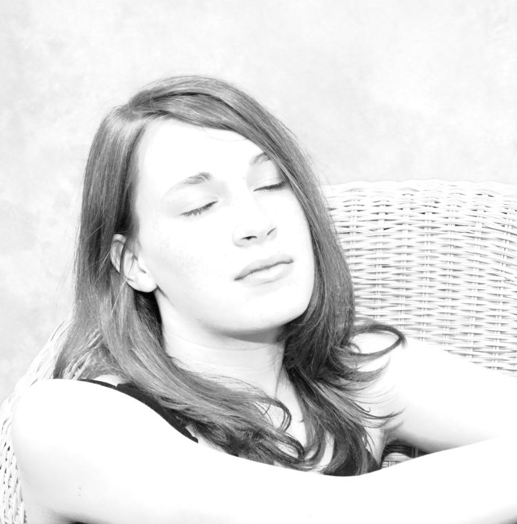 Her closed eyes are perfect for the dream-like mood of your high key treatment. And the wicker texture of the chair separates it from her skin even with minimal tone difference. |