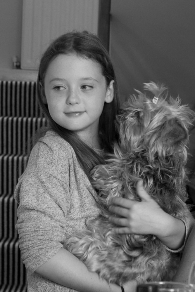 Direct eye contact, soft light, and simplicity of framing create a powerful portrait. Available light left the eyes a little dull, in Lightroom I brushed in some positive exposure to brighten them. |