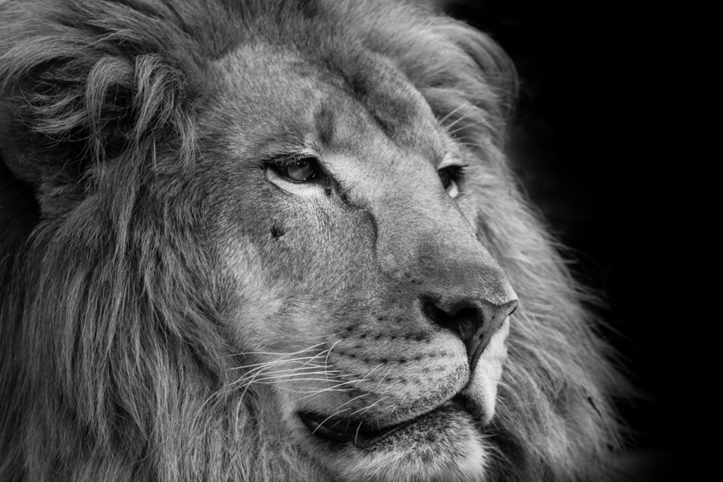 Flat light is a problem in this photo. I like Jim H's brightening and extended it by adding exposure to the mane on the right side (lion's left). This makes the light seem more directional and adds contrast to the image. |