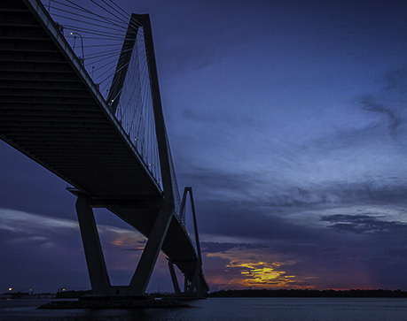 i love the idea of what you were trying to capture. love the colors. i think i would crop a little on the left and the right. i think it would bring balance as Gary was saying and focus your eye more to the sun, rather than the bridge. |