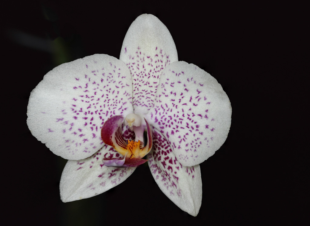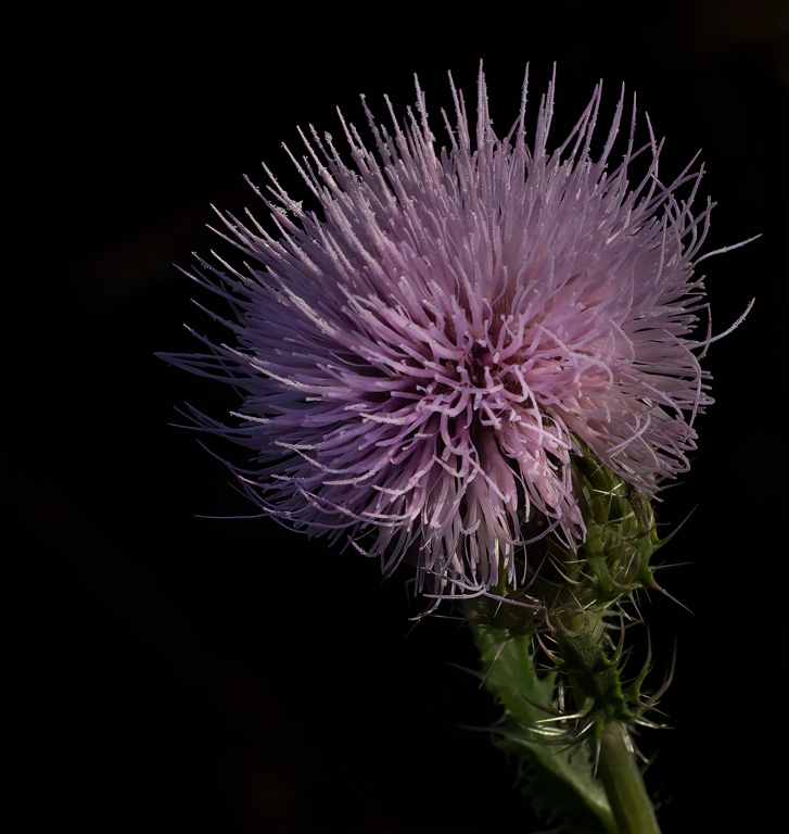 COMPOSITION IS GOOD WITH THE STEM RUNNING UP TO THE RIGHT AND EXPLODING WITH THE THE BUDS ON TOP.