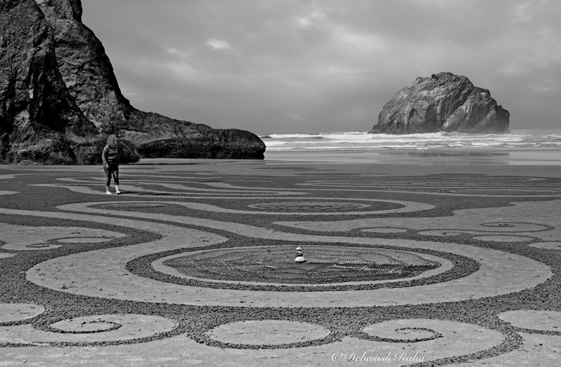Hello Mike, these circles are designed for people to have a meditative experience while walking along clear portion of the path, which is really cool. I wish there is more of the design visible. Also, the design part of the beach is bit darker to me. I used a linear gradient to lighten up a bit. |