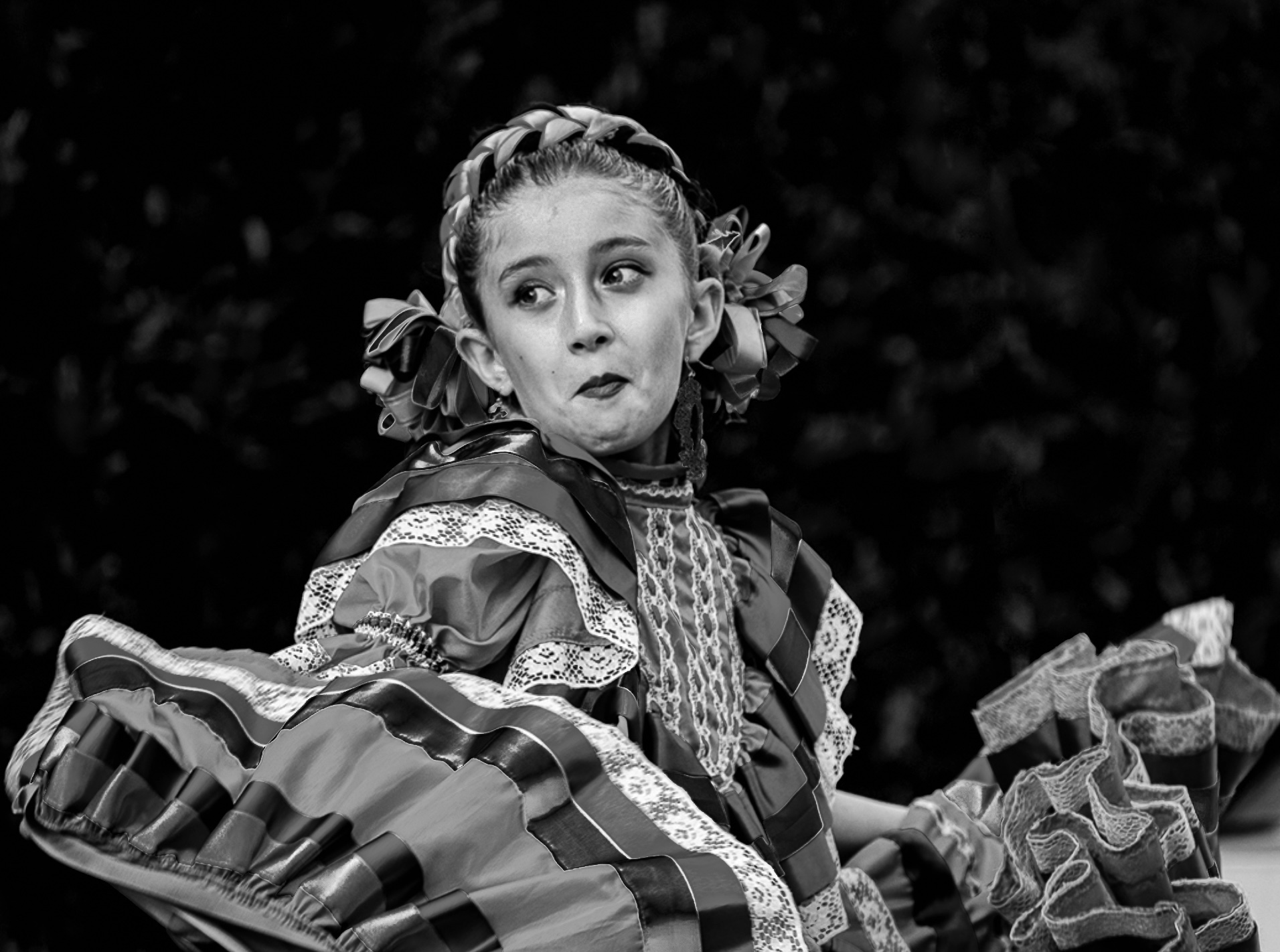 Hello Jennifer, this is a great capture of the moment, color representing the festival and expression on her face. It reminded me some of the shots I took at the San Francisco Carnaval in 2018. I tried a BW version, which focus on the expression of her face and with a dimmer background |