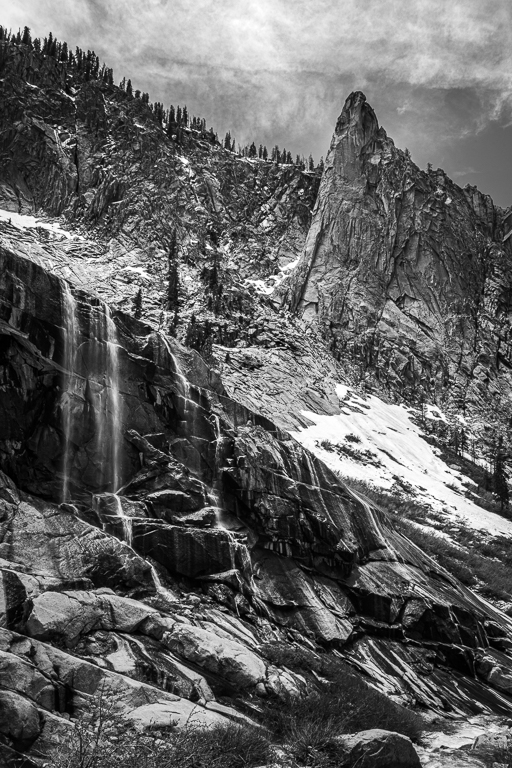 Nicely done! It all works well together. The golden aspens shining through the darker forest and misty snowfall is magical. I like the strong diagonal composition and vertical trees leading our eye to that clearer outcrop with the lovely texture and topped by a darker stand of trees. Can't think of much I'd change, though somehow I want to stretch it out horizontally a little into a more panoramic aspect (but maybe always starting with the 3:2 rather than 4:5 aspect ratio is messing with my mind). |