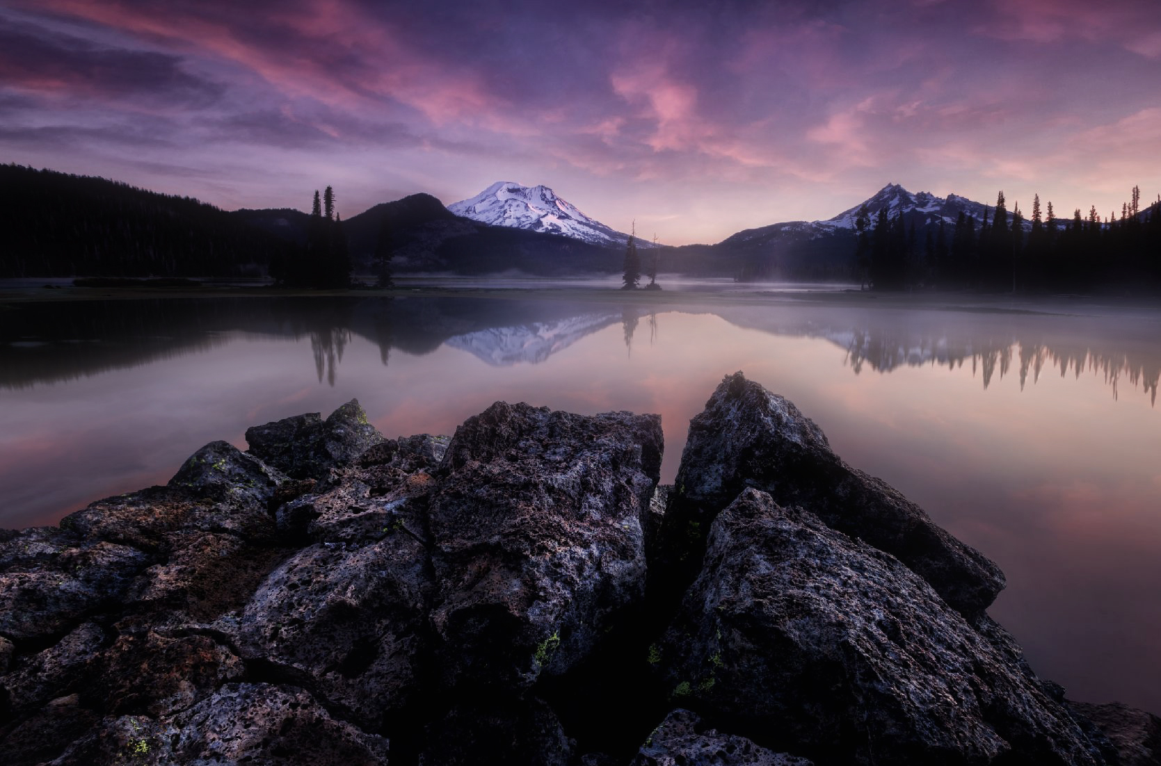 The foreground rocks shows triangle/diagonal line to the mountain and you have 4 layers to enjoy my eyes - foreground, reflections, mountain, and cloud actions. It is filled with unique components but structured nicely.