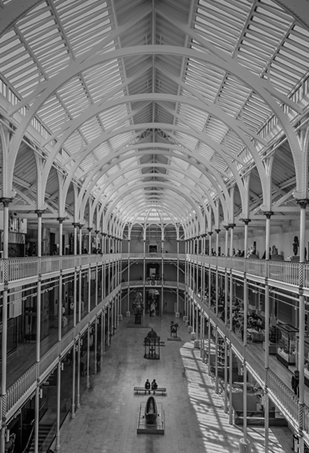 Thank you for sharing. I like the original shot very much. I like soft lighting, the structure of the building, and subtle colors. And the conversion is well managed, i.e. tone control, lighting, and the clean up the businesses (I guess you try to add story).