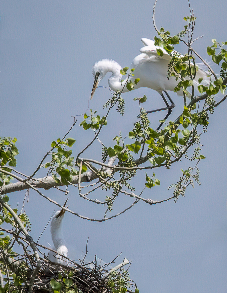 Nice shot. You've captured an interesting story of two birds that appear to be talking to each other. Good exposure and sharp details. The branches and foliage provide a nice setting. I agree with the other members' comments that cropping and cleaning the edges would improve the image.