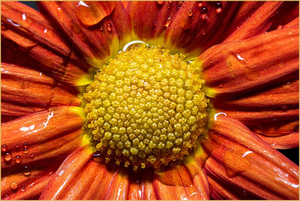 Beautiful! The petals of the purple scabiosa have nice curves and twists. Good lighting with sharp details in the center. The dew drops add impact. The pleasing background complements the flower. I wonder if a tighter crop would give more attention to the lovely scabiosa. I like it. |