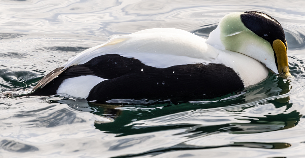 Friends have agreed with you, Thorro. They suggest that when I'm shooting eiders and adult gulls and other birds with a lot of strong white I should turn down my exposure by several stops - solve the problem in my capture. I've been blowing out too much white in my capture. |