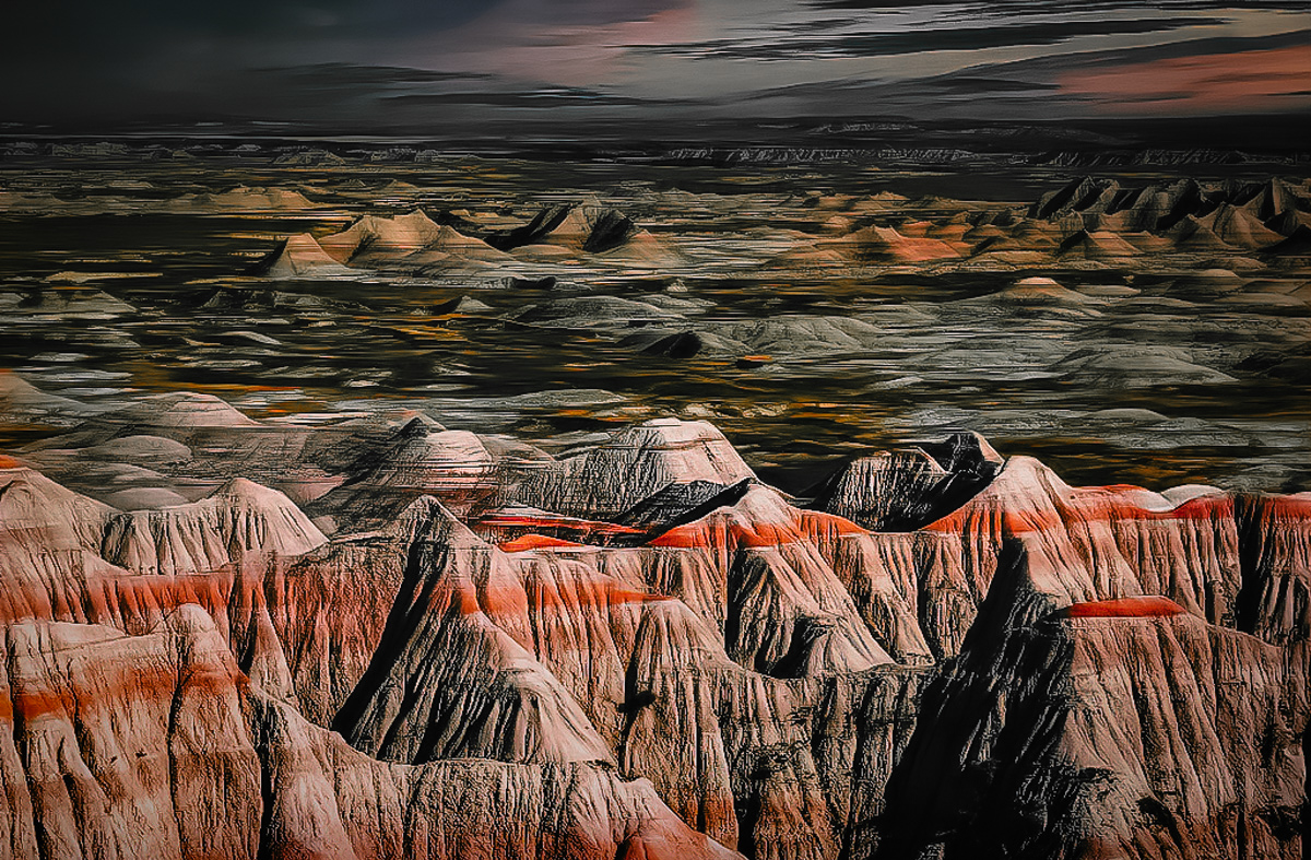 Hi Bob, Happy New Year! Of the images that you've presented since joining the group, this is my favorite. I like it a lot. In particular I enjoy the strong graphic forms, repeated with the layering you've created, and contrasted with the softer sky. I also like the repeated reddish tone, which shows up in the foreground, then the highlights of the mid ground, and then the sky. All elements of this image work very well together. I could keep looking at it for a very long time and not get tired.