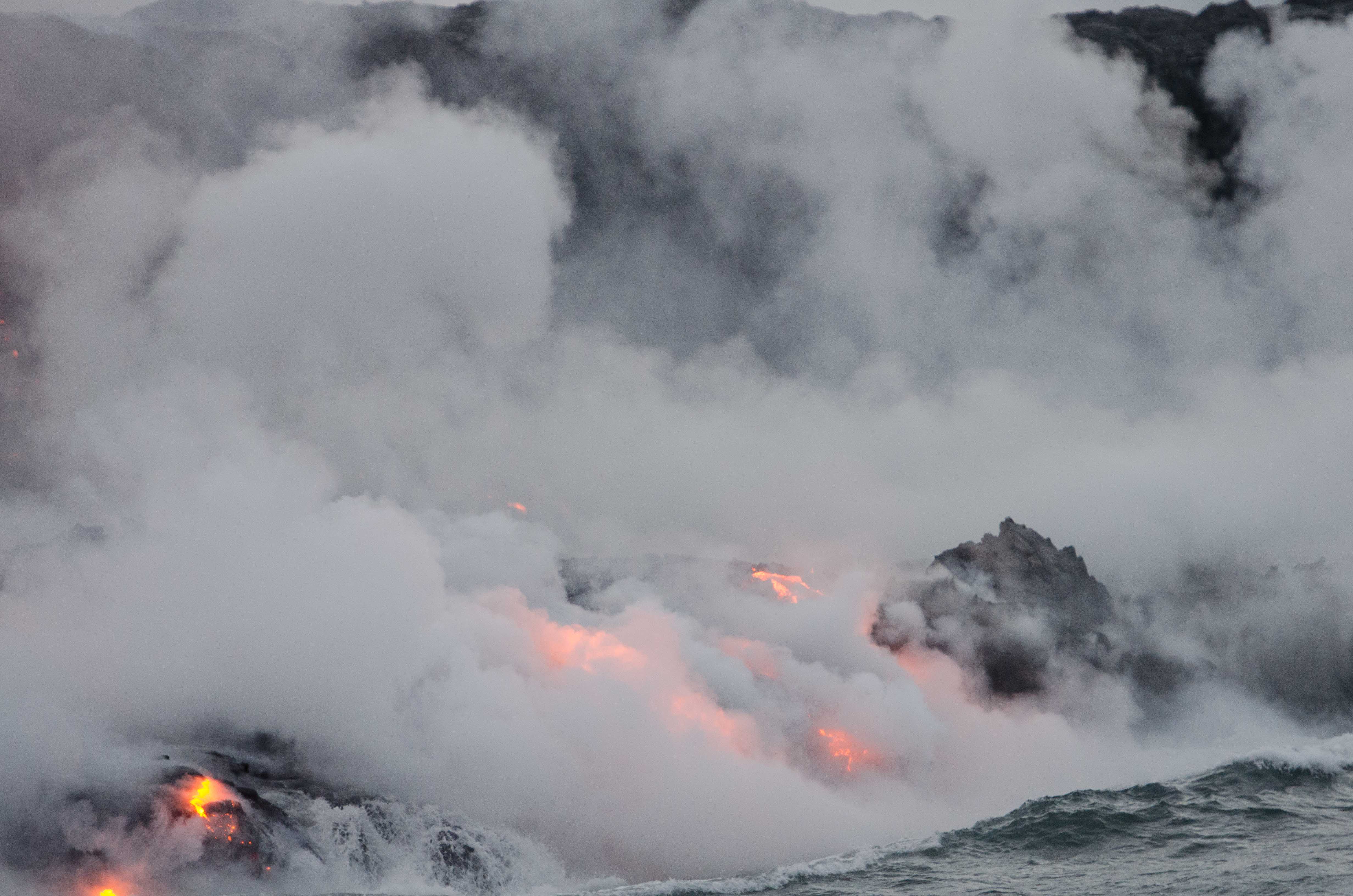 Thanks Haru. Your suggestion prompted me to look to see if I had another frame where the wave action was even more dramatic, but alas I do not. Everything was changing very rapidly. Next frame I have the mist & steam have dissipated enough you see too much lava. Of course I wasn't shooting 10 or 20 fps which is what I'd show up prepared to do now.