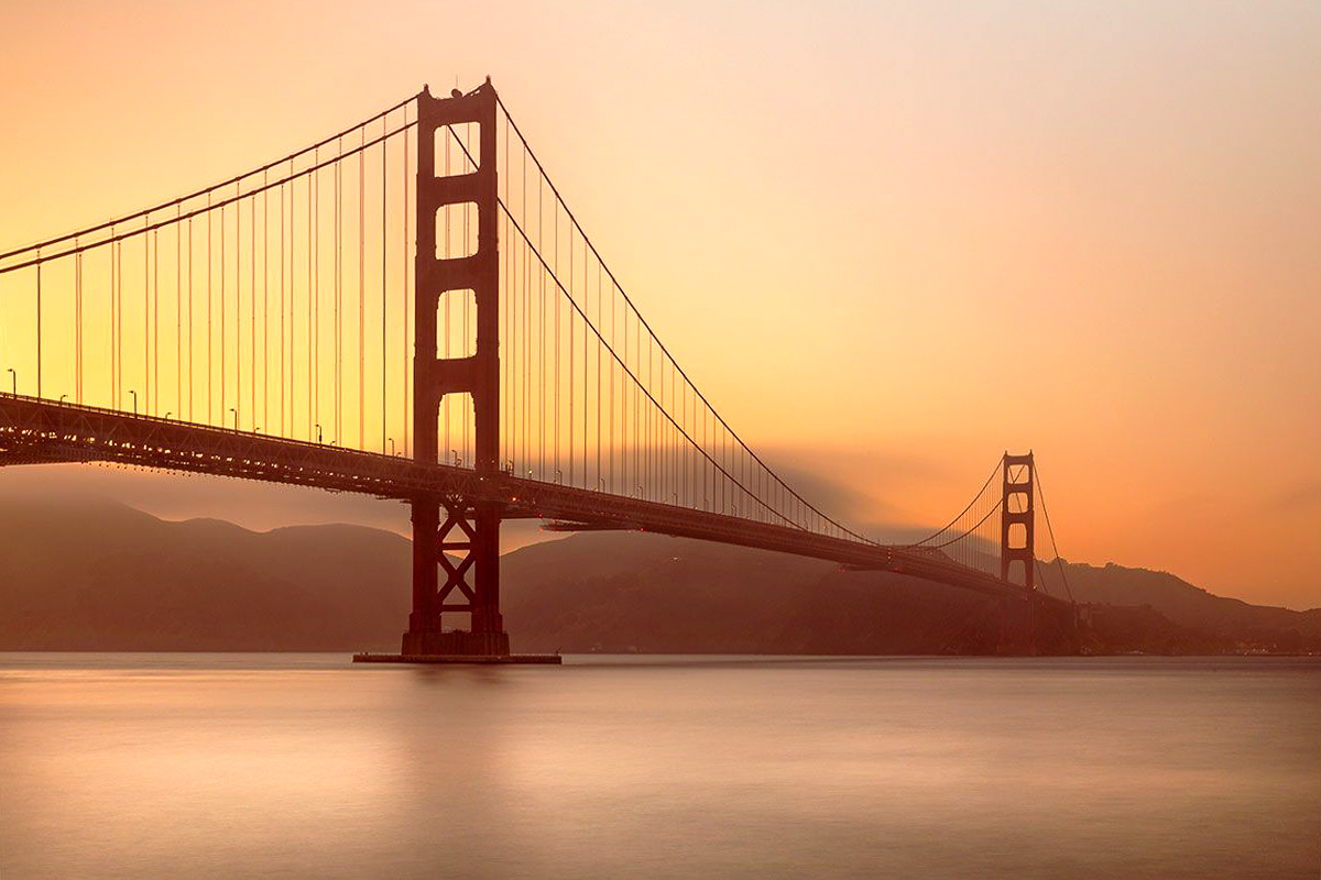 I don't think you can make the image into something it is not (and were it me I'd be very happy with this one). The glowing red bridge image would be the one from the other side. I am sure that one would be spectacular as well - but very different in mood. It sounds like the image did not come out exactly like the vision in your head. I can't count how many times I have had that happen. That said, I think you can push a little more red into the shadows (for example using the color grading tool in Lightroom, which might give you more of the red bridge you are looking for. I would also think about a transform to straighten (vertical) the support wires. I think given the perspective, you need more than just rotating in the crop tool. Finally, you have room to brighten the whites - but that is a personal call as it changes the mood a bit. I've tried all of that below.