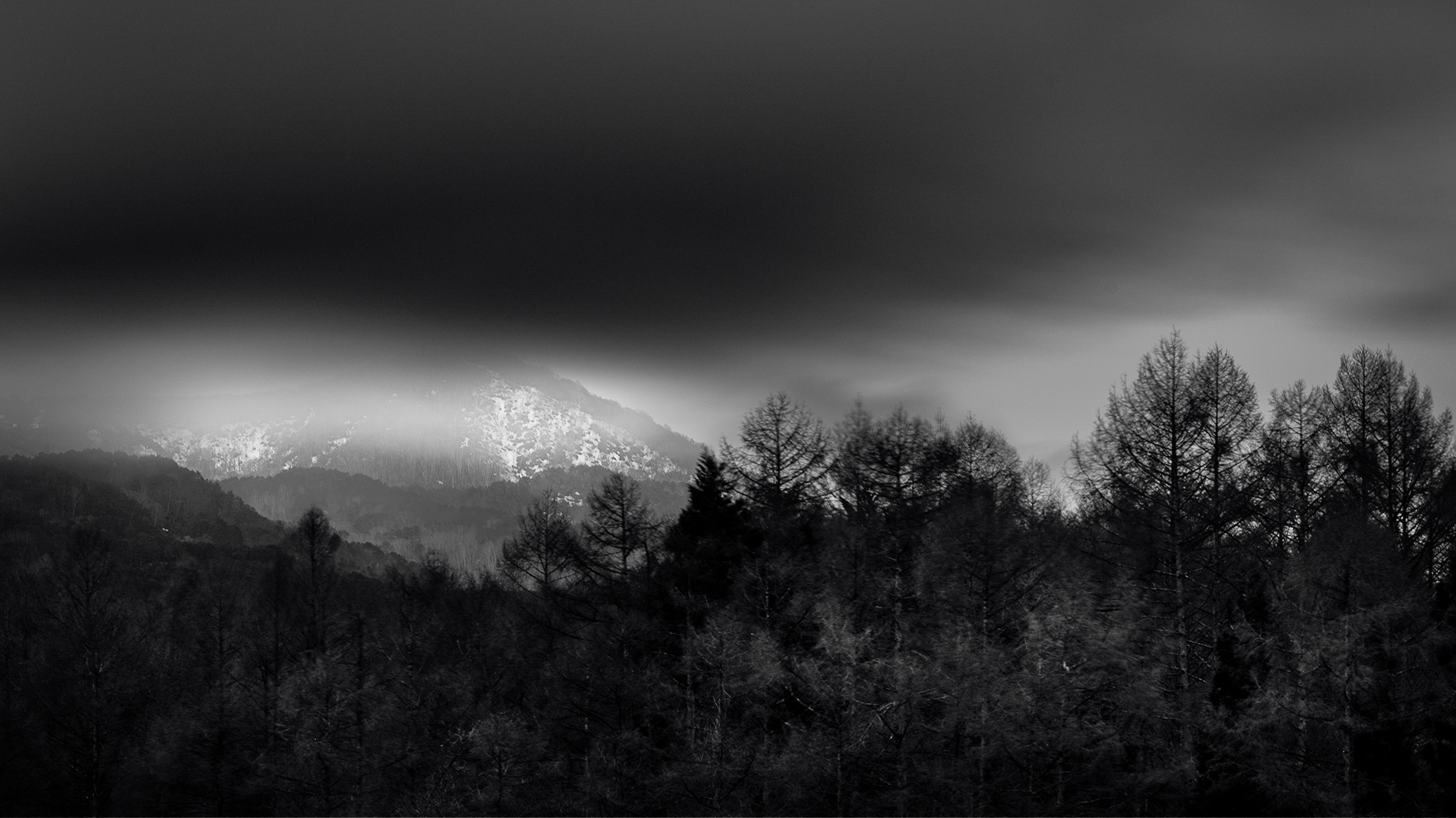 I assumed until I started playing with it that the foreground was lost as pure black. But there is actually a lot of tonality there to be worked. So that is what I sought to do. I think there is a delicate balance between bringing up some detail in the foreground without loosing the ethereal sense the clouds and darkness bring. I am also not great at B&W. But my attempt is below. I think a master fine art B&W printer could keep the foreground dark while allowing just enough detail to glow through. I am not sure you can ever quite do that on screen.
