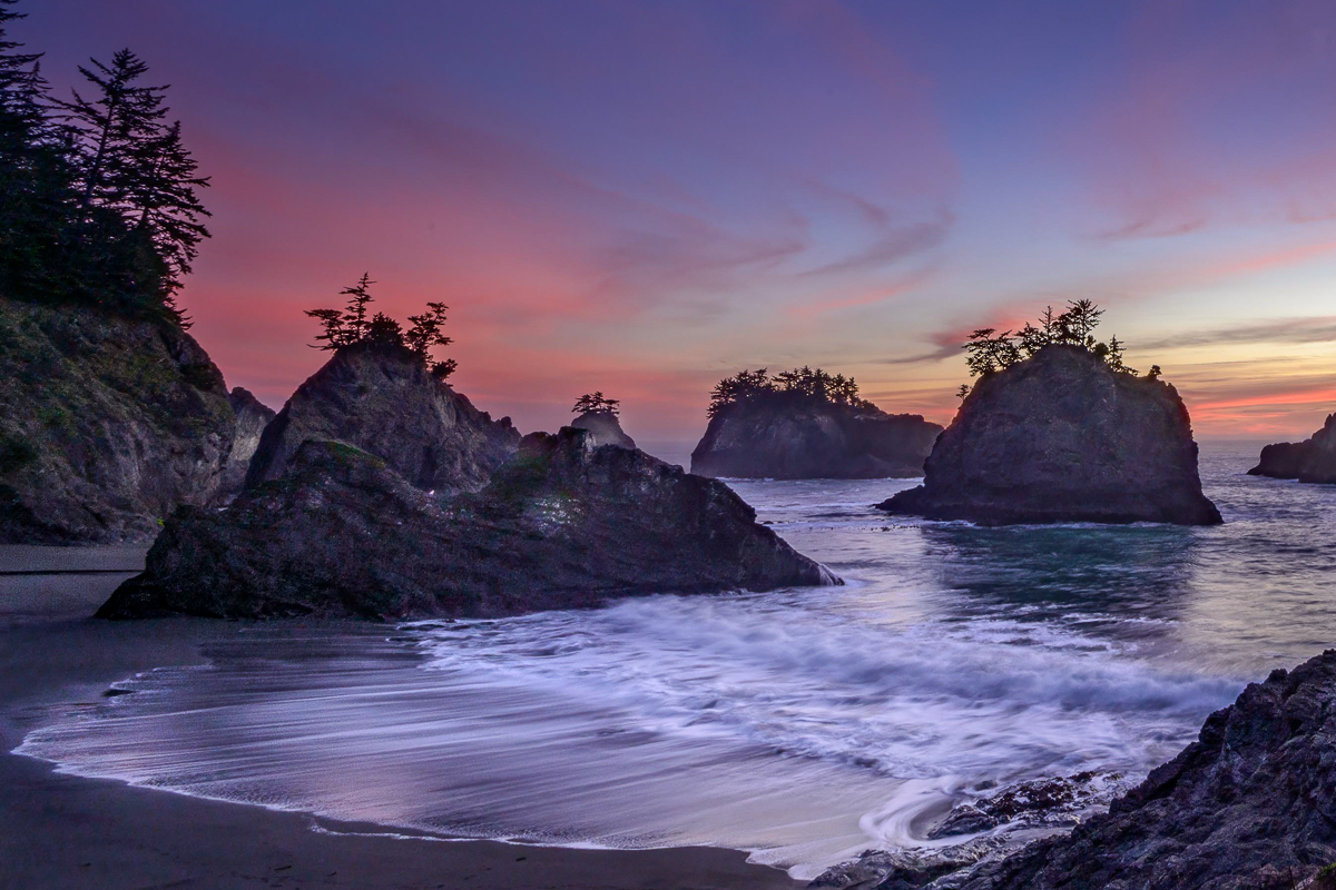 I feel like the image is a little dark, though that could be my particular screen. But I'd like to see a little more detail in the shadows. You also have so many lovely things in the image, I have a little difficulty deciding where to look. My favorite is the wash coming into the beach. Your long exposure has done a great job bringing out lovely textures in the water.