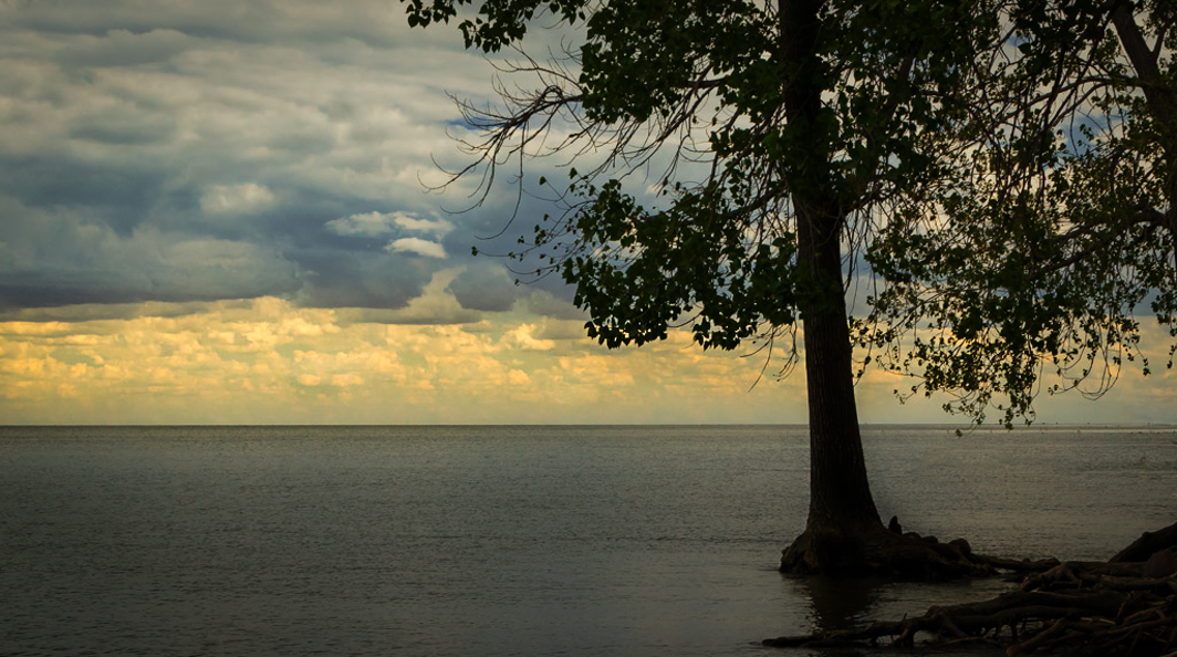 I really like the idea of the tree as a silhouette and looking out over the water at the beautiful clouds.