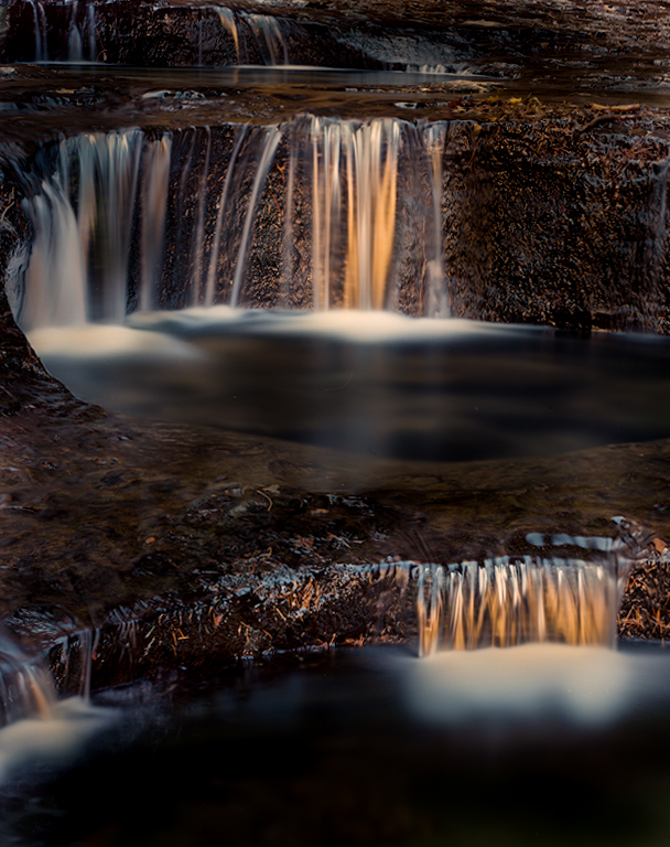 It sounds like the light was wonderful and the camera sometimes does not see this. I really like what you did with your second edit by darkening the areas around the waterfalls to bring attention to the waterfalls themselves. This gives the image more of a subject. I too played around with the crop a little and only you can decide which of us is portraying what you wanted. I wish you would have been able to open up the composition to allow a little more room around the waterfalls but alas sometimes the location does not allow for this as you have stated. I think your second edit does portray more of that mystical feel you were going for. My thoughts regarding your second edit is that the colors are probably a bit overdone. I was not there so it is difficult for me to say for sure but my guess is that they are a little strong. Maybe toning down the color a little and adding a glow might get it closer to what you are wanting to portray. |