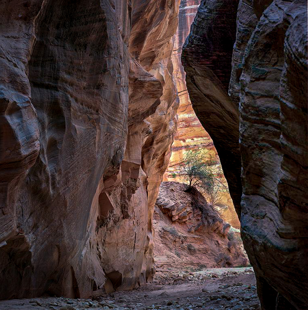 Another interesting image with a lonely tree. I love how you compose to show the one lonely tree. I agree with the other comments about the saturation. While this worked really well on some of your other canyon images it removes the focus on the tree in this case. I tried editing your original to emphasize the tree itself and it is not easy to isolate it from the background. What I found worked was to use the radiant circle in Lightroom and then mask using luminance adjusting the mask to select non-luminance (ie the tree). I then moved the black slider to the left to darken the tree. You may have a better way but this is what I found worked. Luminance masking in photoshop would probably work as well. I love the textures in this image and I never tire of your canyon images. |
