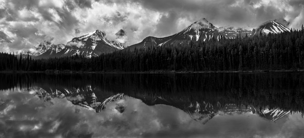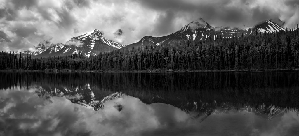 I have done one more edit which I will leave for a while and come back to it. Sometimes some distance and when you come back it just hits you what needs to be done. I have created more drama in the sky, darkened the shadows at the base of the trees but left the light on the tips so they don't look too dark as Haru has said. I used Dan's suggestion on the reflection but I darkened it and removed some of the clarity so it does not look too strong and distracting in the image. Then I put a radial circle around the left mountain and darkened the rest of the image to make that mountain the focal point. This is the best edit so far but I will come back later to see if I need to adjust somewhere. Many thanks to you and everyone else for helping me make something out of this image. |