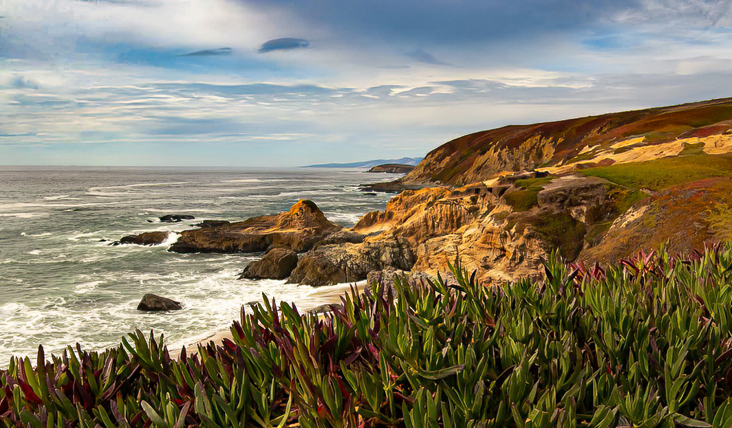 what a wonderful spot. I like the the foreground detail and the leading line of the rocks and cliffs through the image. I think the image would benefit from some contrast in the midtones and some dodging and burning of the shadows and highlights to add dimension. The sky is very bright as well and a linear gradient in lightroom to adjust the exposure, temp and dehaze sliders could bring out more color and detail. Cropping to put the cliffs closer to the rule of thirds and cropping out some of the foreground also helps to put the attention on the cliffs. As you mention a better time of day would improve the harsh look to the shadows and you could use a longer shutter speed to smooth out the ocean. All options you could play with to see what kind of look you want to acheive. I tried adding some contrast and darkening the sky to see what it would look like. |