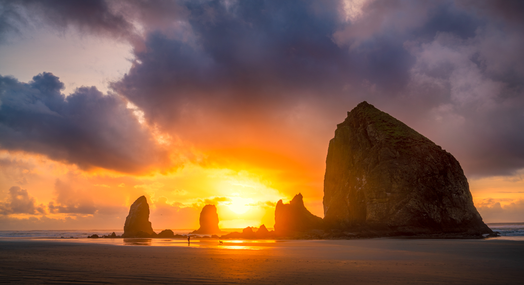 Thank you for the kind words. This is in Oregon on Canon beach. I believe they call the large rock formation Haystack rock. |