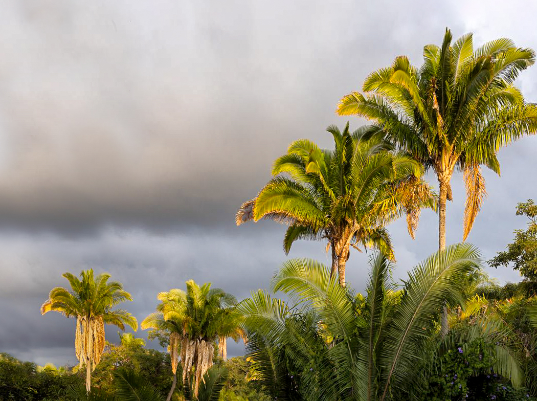I really like the lighting of this image. You definitely picked the right time of day. I am not a fan of the branches in the top left. As well the image was taken with an upward angle causing the trees to appear to be leaning. This is an easy fix in lightroom by clicking on the vertical option in the transform settings. It is not too difficult to clone out those upper branches and lower branches on the left to simplify the image and bring all the focus to the main palm trees. The clouds add a bit of moodiness to the image and make me wonder if a storm is coming but there are still rays of happy sunshine on the trees. It provides a nice contrast in the image. Great choice in camera. I have heard very good things about that camera. I personally like a crop with all 4 trees. I know some say that groups of 3's work better but in this case I like all 4 trees. |