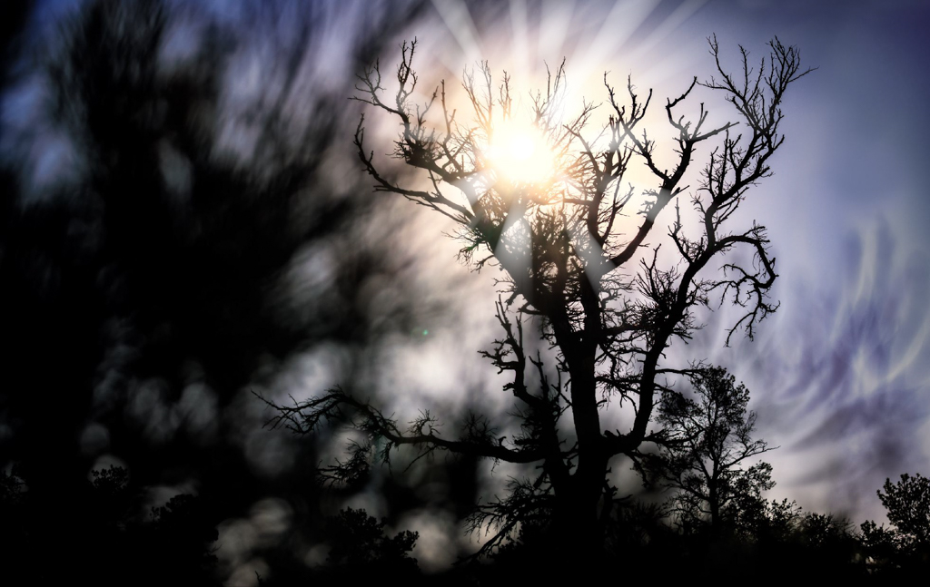 I definitely get the ominous feel from the image which I think comes from not knowing just what is going on in the background and the coloring. My eye is begging for some sun rays which I know doesn't happen from a wide open aperture. I tried adding some but I am not sure I like it. I think it takes away from the ominous feel. I also found the bright colored dots distracting so I removed them. I don't think I can help you improve it much. It is a cool photo just as you have posted. |