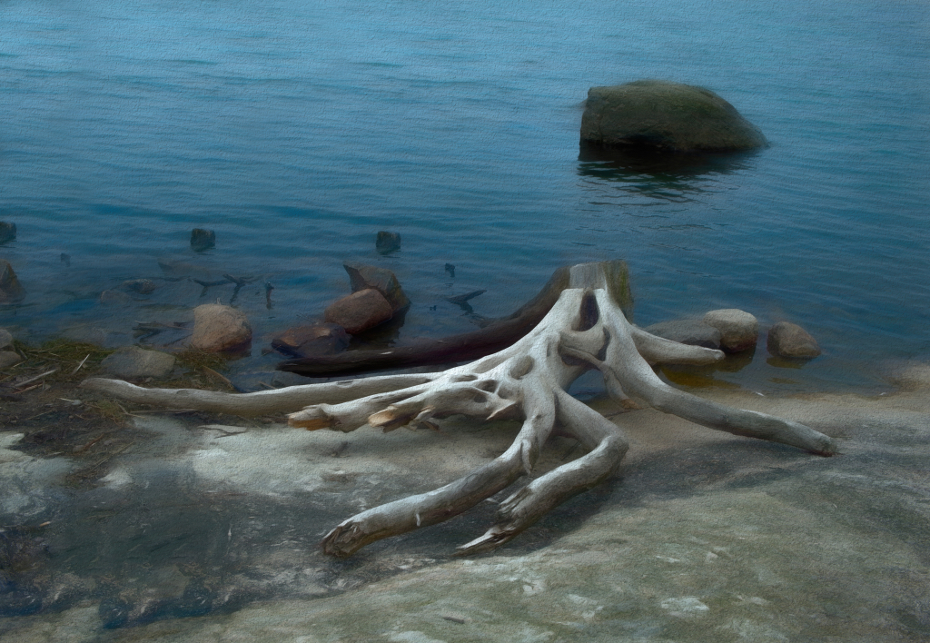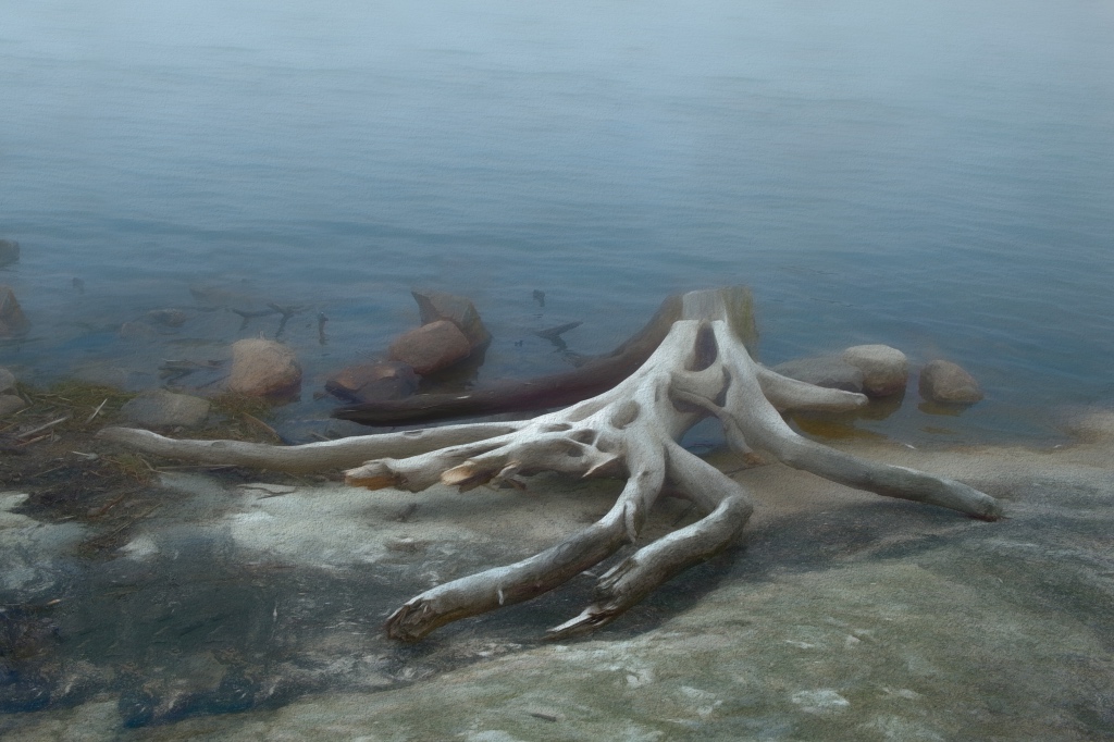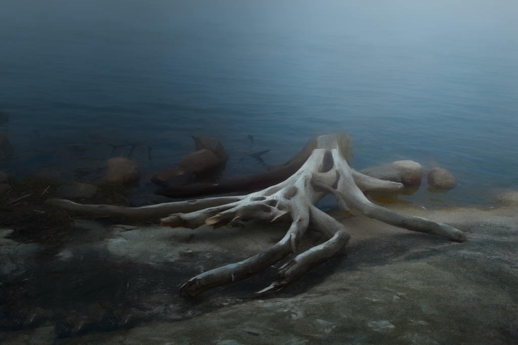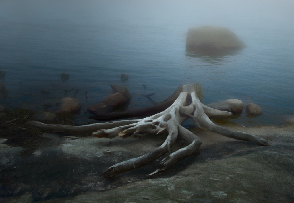 Jeri, thanks! I tried to think a way to add something up there and tried a vignette that brings some contrast in the foggy water; I think that it looks like the creature is now thinking of swimming towards the light? |