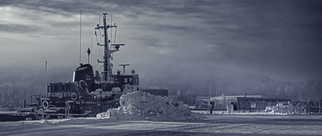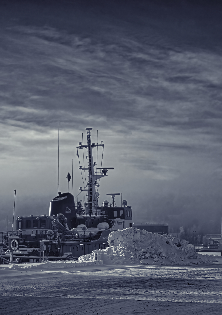 Thanks, Larry! I do agree with all your points! One of the crops I tried was exactly the one you suggested, and is probably the most sound solution composition-wise. However, I felt that it ripped off the atmosphere of a harbor silenced by the cold, leaving only a-not-so-good picture of an unremarkable boat and an untidy pile of snow. I began to see the empty pier as the key element instead of the boat, leading to unknown destination but frozen to stillness for the moment. The boat and the car (the means of transportation) also stand still. I think that the patterns of light and shadow and the rail form kind of leading lines towards a vanishing point on the right edge. Does this make any sense?